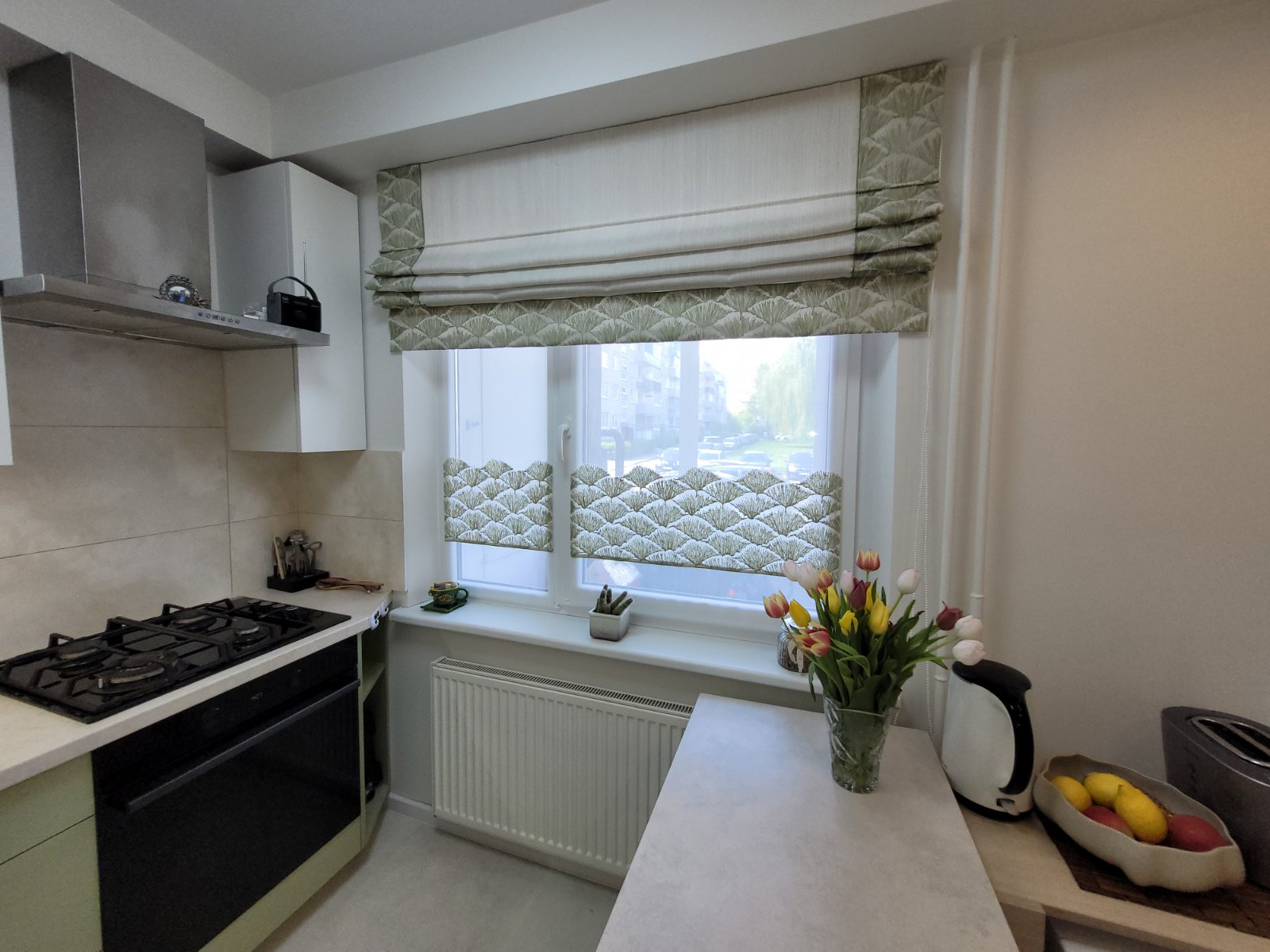 Atvykstame, montuojame karnizus ir kabiname užuolaidas
